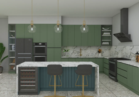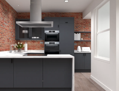 Using black, white, and gray as the basic color scheme, complex colors are avoided, and a simple, calm, and sophisticated industrial atmosphere is created through the contrast of light and dark colors. The main colors are dark gray, charcoal black, and pure white. Cabinets can be black or white, creating a strong color contrast; avoid using large areas kitchen design ideas of highly saturated colors, but a small amount of bright colors can be used as accents, such as red vintage appliances or green plants, to break the monotony of black, white, and gray; for smaller kitchens, using light gray as the main color can prevent the space from feeling cramped.