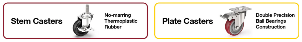 There are two main types of casters: swivel casters and rigid casters. Swivel casters allow movement in any direction, while rigid casters only move in a straight line.
