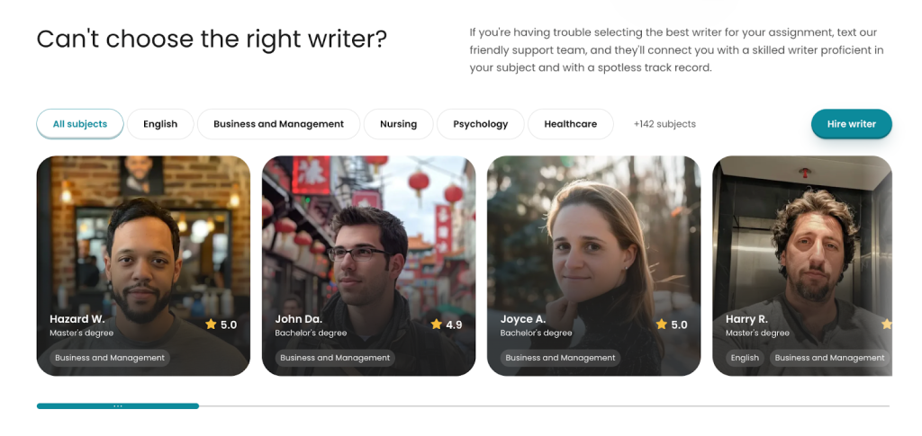 The site covers over 140 subjects, including English, Business, Nursing, and Psychology. It’s ideal for anyone who says, “Can someone help me write my essay?” and actually wants a real, human writer – not a robot.